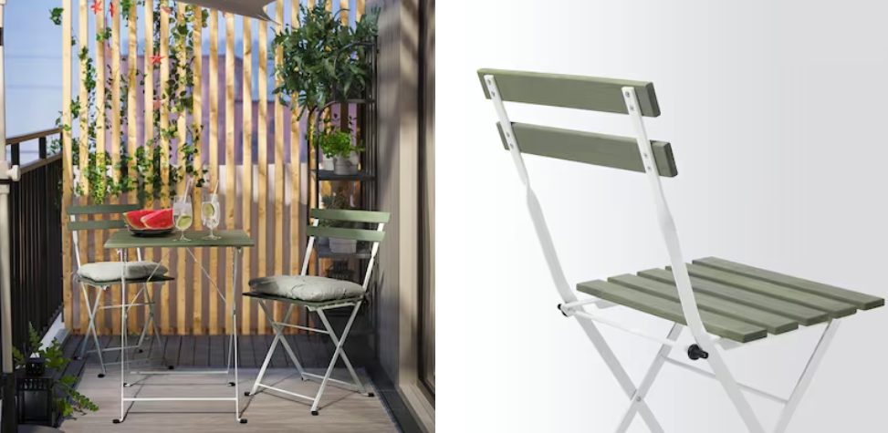 Si esta maceta con autorriego te ha encantado para mantener tus plantas siempre cuidadas, también es el momento de hacerte con otros de los accesorios imperdibles para tu zona de exterior que puedes encontrar ya en Ikea. Un buen ejemplo lo tienes en este conjunto de mesa y dos sillas, a las que les puedes añadir cojines también disponibles en la tienda para mayor comodidad, que se convertirá en tu favorito para descansar en tu balcón, terraza o jardín. Con una bonita combinación de blanco y verde, puedes coneguir ya las tres piezas por tan solo 54,99 euros. Sin duda, una gran inversión para la temporada.