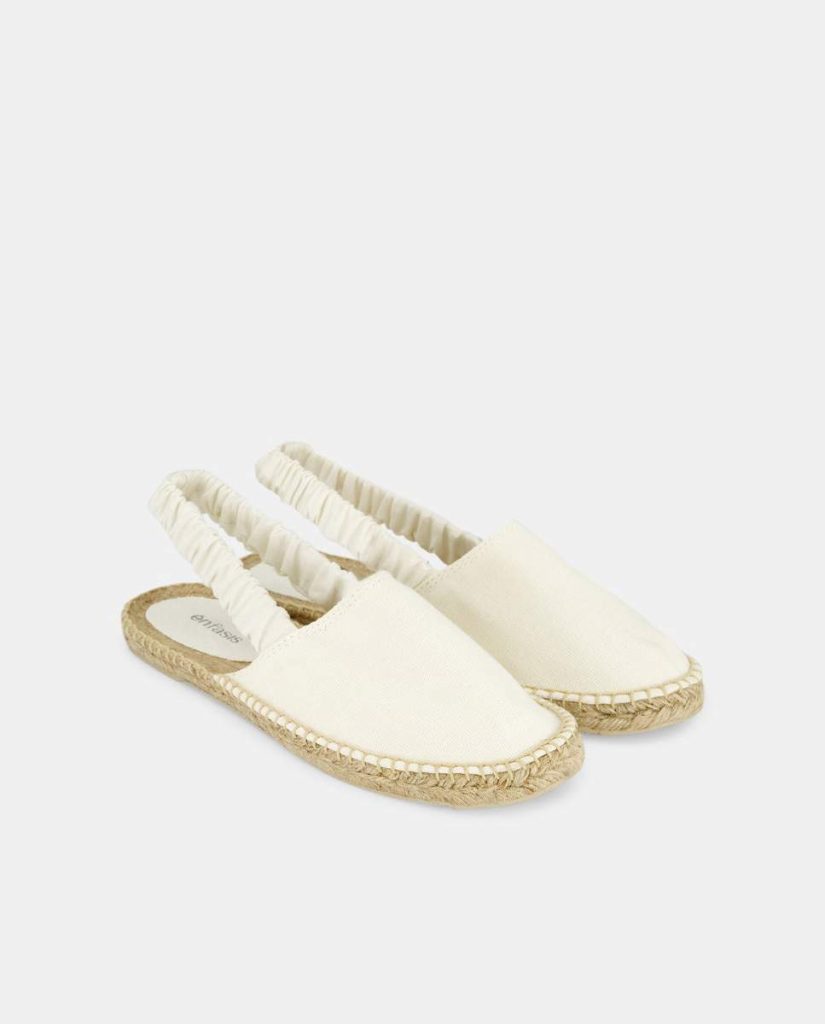 Uno de los modelos más destacados son las alpargatas destalonadas, que se caracterizan por su originalidad y estilo. Con una tira fruncida y un color blanco elegante, estas alpargatas son perfectas para lucir con una falda midi y una blusa lisa, creando un look sofisticado y chic. Su precio es de 22,99 euros.