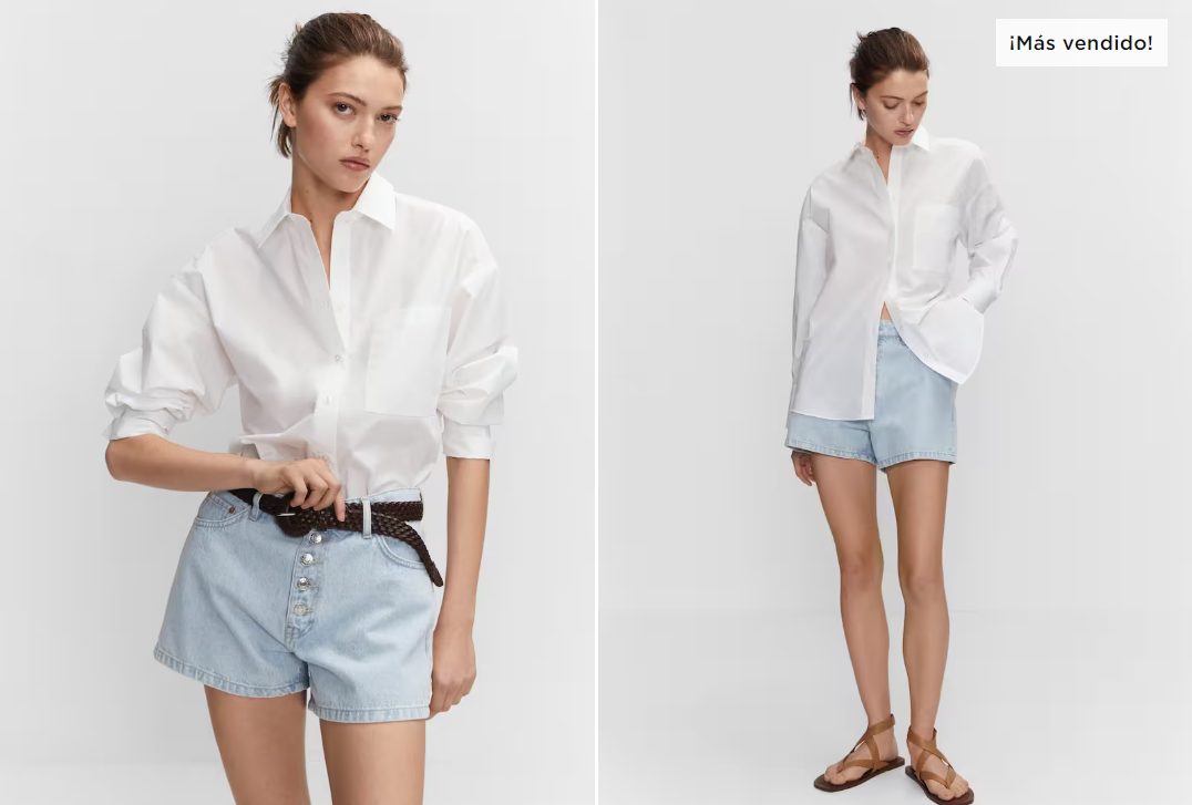 Si deseas llenar tu armario de básicos ideales para crear cientos de looks esta primavera, otra de las prendas que no pueden faltar es la clásica camisa blanca. Esta de Mango Outlet te encantará por estar realizada en algodón, lo que la convierte en una prenda de calidad, respetuosa y muy suave al tacto, así como por su diseño regular fit, capaz de adaptarse a todo tipo de siluetas. Con grandes solapas, la querrás lucir con todas tus prendas, incluso con tus shorts favoritos. En cuanto a su precio, ahora la puedes conseguir por tan solo 15,99 euros en lugar de por 25,99. Una gran inversión.