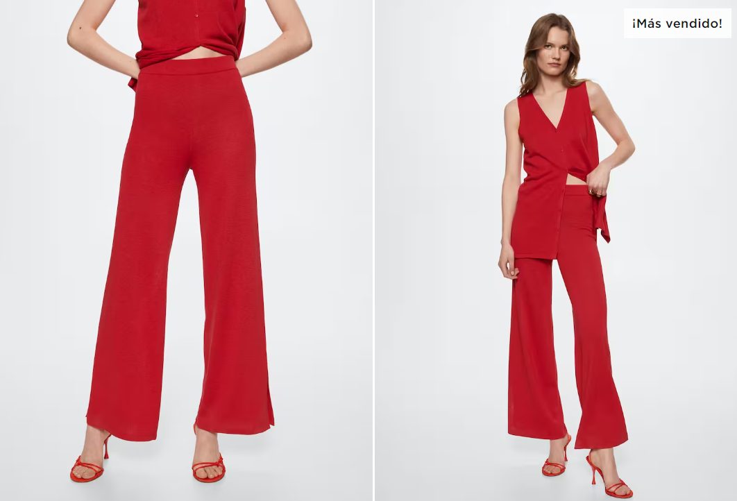 En el caso de que lo que busques sean prendas capaces de captar todas las miradas, lo conseguirás con opciones como este pantalón de Mango Outlet. Elaborado en punto, llama la atención gracias a su potente color rojo pasión, uno de los favoritos de esta primavera 2024. Con acabado de pierna ancha y talle alto, favorece a todo tipo de siluetas y es fácil de combinar. Sin duda, es la alternativa más recomendable si buscas que se convierta en el gran protagonista de tu look. En cuanto a su precio, ahora te puedes hacer con él por tan solo 11,99 euros en lugar de por 29,99. Un gran descuento del 60%.