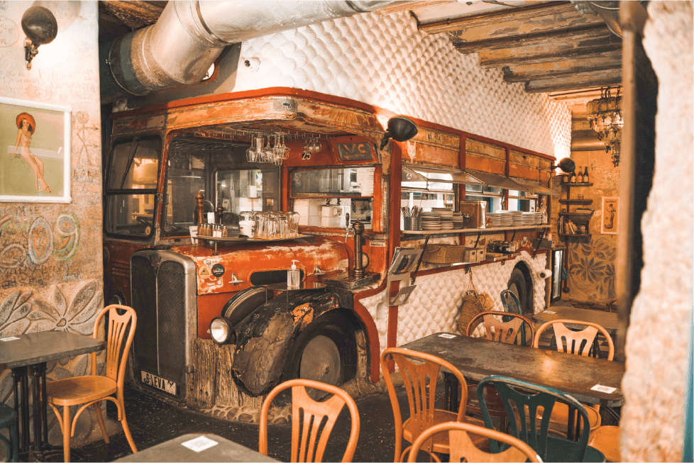 La Creperie Bretonne es una cadena de creperías con ubicaciones en varias ciudades españolas. El elemento distintivo de estos establecimientos es un viejo autobús restaurado, que constituye el punto focal de su decoración. Los locales tienen un ambiente muy agradable, con detalles y muebles vintage que crean una atmósfera acogedora.