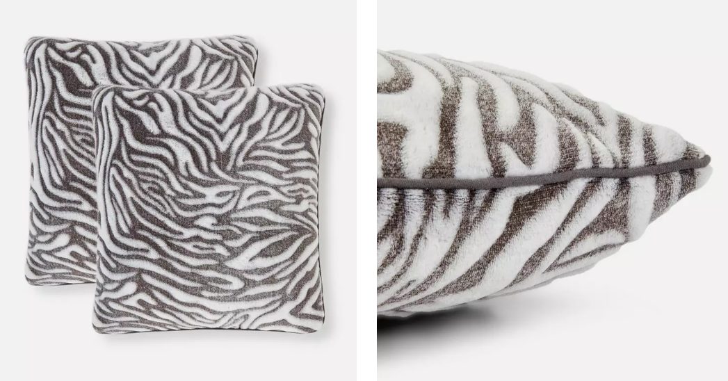 Si buscas darle un toque renovado a tu dormitorio, a la vez que divertido, elegante y de lo más llamativo, este otro pack de cojines de Primark Home se convertirá en tu mejor aliado. De nuevo, podrás disfrutar de dos cojines de 43×43 cm. En este caso, lo mejor es su estampado de cebra en tonos blanco y gris, que encaja en cualquier decoración y además eleva todo el conjunto transformando tu cama, así como el resto de tu estancia. En cuanto a su precio, lo puedes conseguir ya por tan solo 13 euros en la tienda. Sin duda, una gran oportunidad para invertir esta primavera.