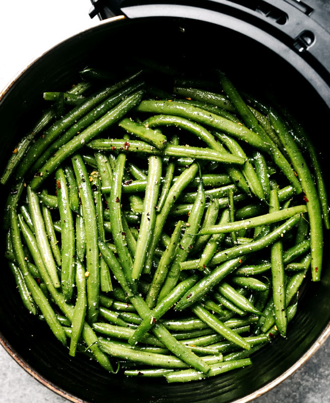 - Programa tu airfryer a 180ºC y hornea las judías verdes durante 6 minutos. Luego, dale la vuelta a las judías y hornea por otros 6 minutos más. Si notas que necesitan un poco más de tiempo para alcanzar la textura deseada, simplemente hornéalas por un minuto adicional.