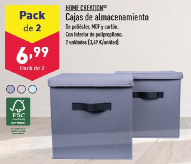En esta ocasión nos hemos fijado en estas cajas de almacenaje que se venden en un pack de dos, en varios colores neutros y a un precio de menos de 7 euros. Unas cajas de almacenamiento de la marca Home Creation que se están agotando en esta conocida cadena de supermercados. Estas cajas de almacenamiento nos pueden ayudar y transformar nuestra casa por solo un precio de 6,99 euros. Una mínima inversión que nos ayudará a organizar nuestras cosas y se pueden convertir en un aliado para mantener el orden en nuestra casa.