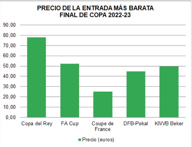 Mientras estos precios se aplicaban en España, la entrada más barata en la final de la FA Cup inglesa fue de 45 libras (52 euros al cambio), la final de la Coupe de France tenía un precio mínimo de 25 euros, la final de la DFB-Pokal alemana costaba 45 euros y la KNVB Beker de Países Bajos costaba 49,50. Todos ellos precios alejados de los 78 euros mínimos de la final de Copa del Rey española.