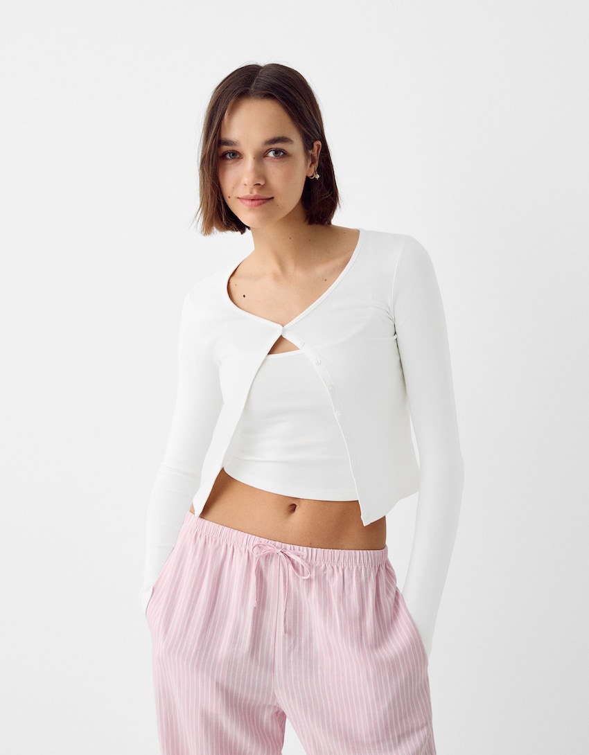 Si estos jerséis manguitos de Bershka te han llamado la atención por su originalidad, tampoco querrás dejar escapar otra de las grandes opciones de esta temporada. Hablamos del cárdigan, que no va a tardar en convertirse en el rey de la primavera gracias a su versatilidad. Si buscas uno que poder combinar con todo, debes echar un vistazo a este de color blanco de la tienda. También disponible en color negro, para que elijas el que mejor se adapte a ti, te puedes hacer ya con él por tan solo 15,99 euros. No encontrarás otro igual a un mejor precio.