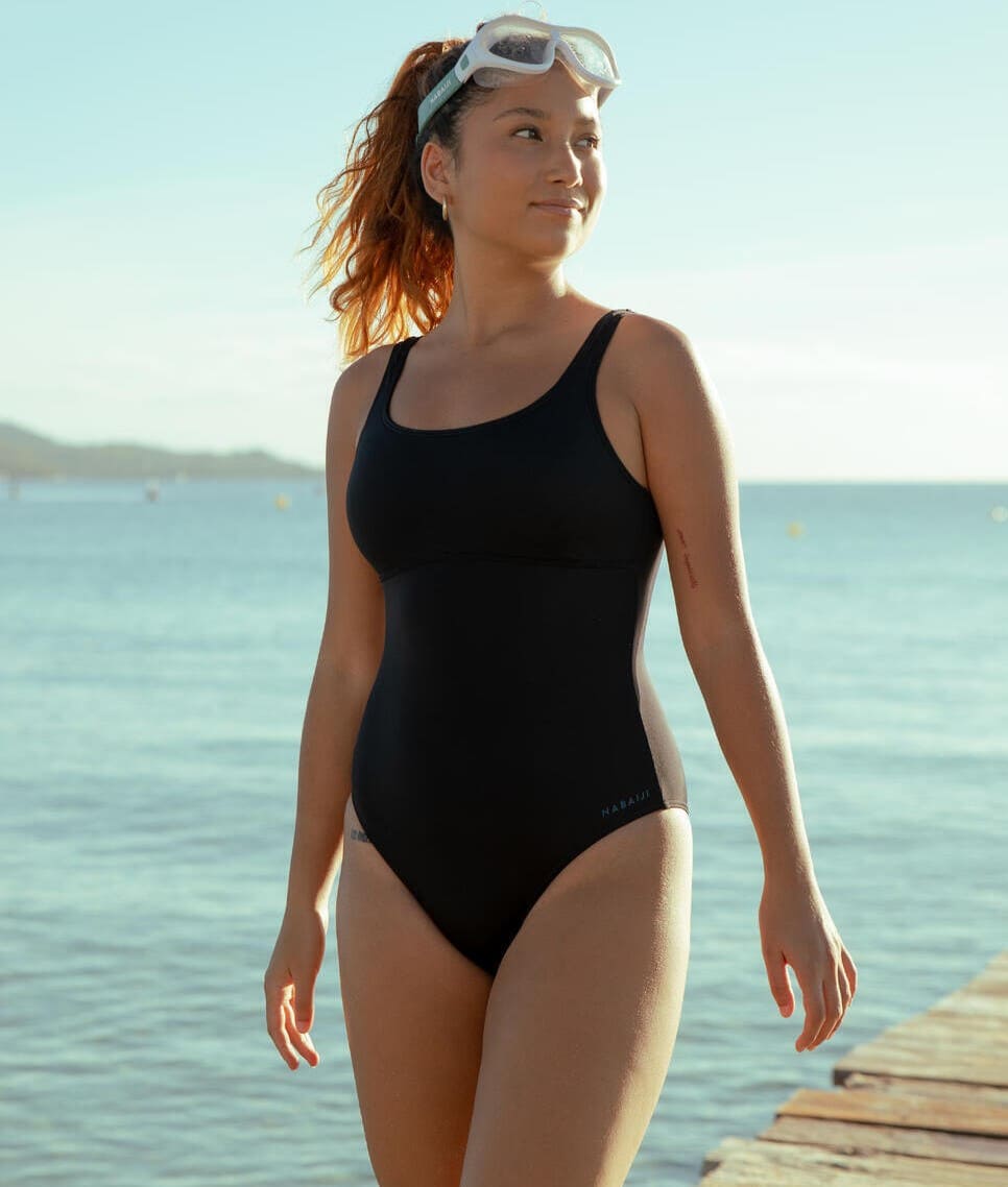 9Características del bañador de mujer para natación en negro Heva U de Nabaiji