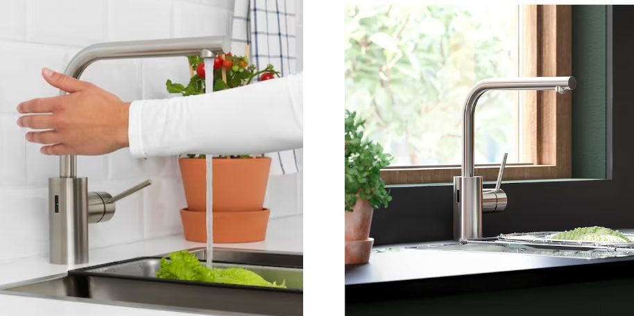 Un buen ejemplo de ello no solo lo tienes en las boquillas para grifo más conocidas de Ikea. Otro de los productos que no podrás dejar pasar si tu intención es ahorrar en el consumo de agua en tu hogar es este. Se trata del grifo para cocina TÄMNAREN, una opción de diseño monomando que llama la atención gracias a su sensor. Elaborado con acero inoxidable, tan solo hace falta pasar la mano, sin tocarlo, para que se accione. El sensor se ubica en la parte lateral del grifo para que no sea vea y siga siendo práctico. En este caso, su precio es de 279 euros en el gigante sueco.