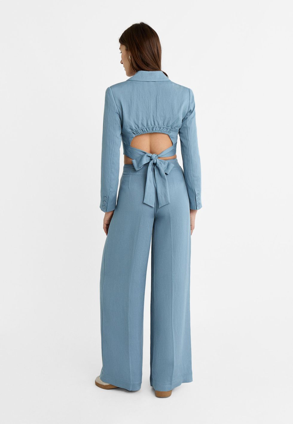 Descubre el encanto y la sofisticación en un conjunto de 2 piezas de Stradivarius, una opción elegante y versátil ideal para eventos especiales como comuniones, bautizos o cualquier ocasión que demande un toque de distinción. Este conjunto, compuesto por un blazer con una delicada abertura en la espalda y un pantalón palazzo, es la elección perfecta para recibir la primavera con estilo y elegancia.