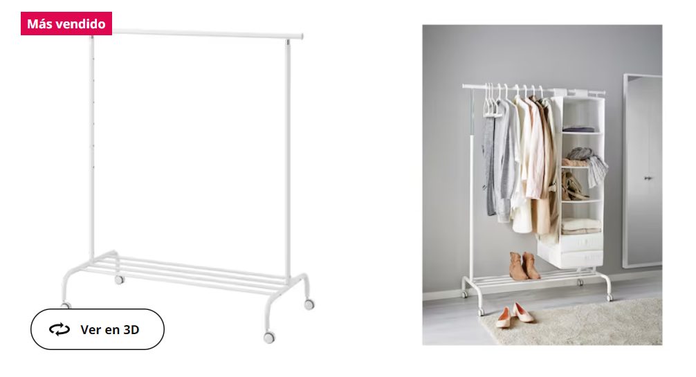 Si estás cansada de mirar el armario y ver cómo no tienes espacio suficiente para tu ropa y complementos, una gran solución que encontrarás en Ikea es este burro. Disponible en color blanco, para combinar en tu casa sin importar cómo sea tu decoración, se trata de uno de esos artículos que te ayudarán a ahorrar espacio. La barra para colgar la ropa se puede regular en seis posiciones distintas, por lo que podrás usarla como necesites. En la zona de abajo, podrás colocar tus zapatos para que estén siempre recogidos. En cuanto a su precio, lo consigues ya por tan solo 19,99 euros. ¡Es uno de los productos más vendidos de la tienda!