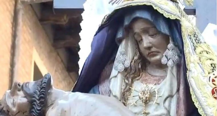 La imagen de la Virgen, que en su regazo lleva el cuerpo inerte de su hijo, cuyo autor se desconoce, es portada por los braceros de luto, aunque los ‘papones’, como se conocer a los cofrades leoneses, no llevan en esta procesión el rostro cubierto.