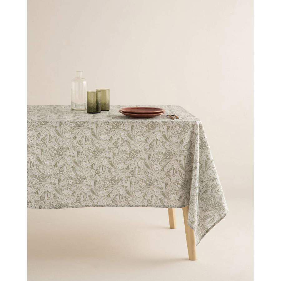 En el caso de que estés buscando un mantel ideal para la primavera esta opción de Carrefour tampoco te dejará indiferente. Se trata de un producto antimanchas elaborado en un 100% de algodón, de tamaño rectangular y que cuenta con unas medidas de 140×200 cm. Sin duda, este mantel destaca gracias a su elegante y diferente estampado paisley realizado en color verde claro, lo que lo convierte en el más buscado de la temporada. Si quieres colocarlo en tu mesa, lo puedes conseguir ya por tan solo 29 euros.
