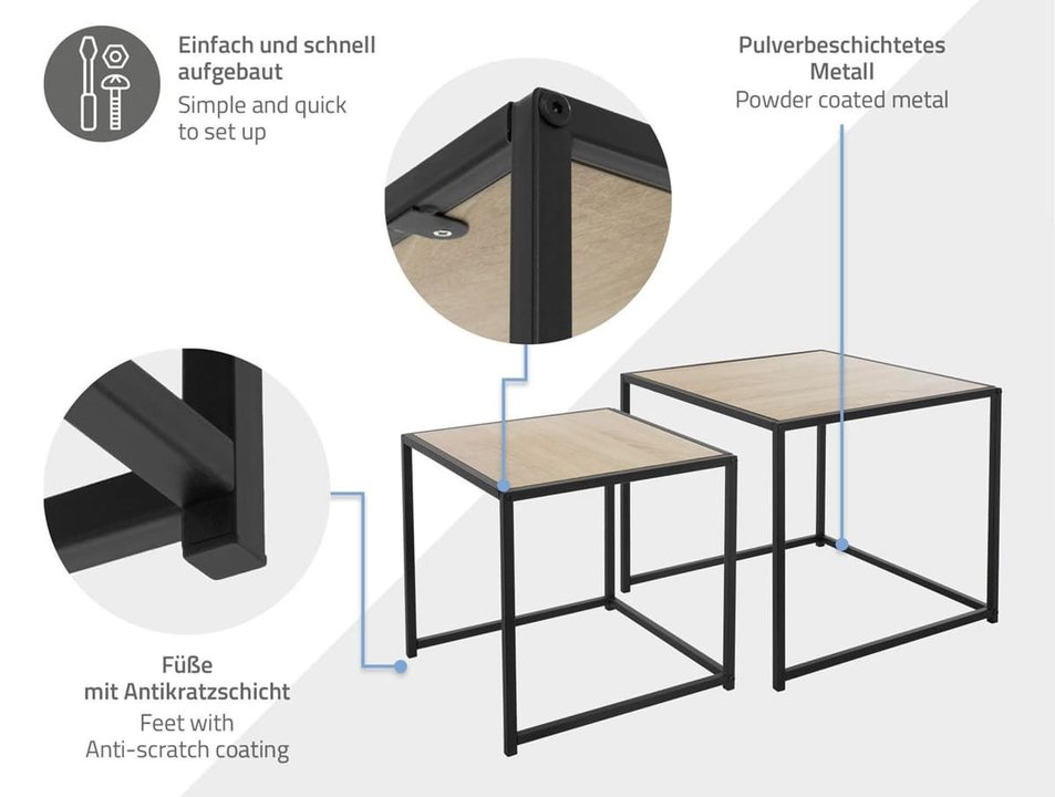Otra de las características por las que destaca este set de dos mesas de venta en Carrefour es porque cada una de las opciones cuenta con un tamaño distinto. Esto hace que sean el conjunto ideal para colocarlas tanto juntas como por separado. Ambas mesas son de metal y cuadradas. Además, cuentan con un aspecto de madera y estructura disponible en tonos como el negro o el blanco para darle un toque distinto a la estancia según su decoración. De estilo moderno y muy sencillo, encajarán en cualquier hogar y te servirán para colocar encima todo lo que necesites.
