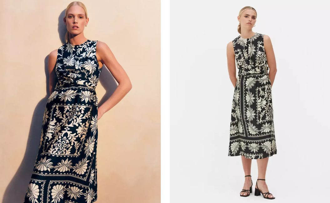 Este es uno de los vestidos que más destacan dentro de la colección The Edit de Primark. Una de las cosas por las que llama la atención es por su estampado pañuelo, de lo más sofisticado y elegante gracias a su combinación de tonos negro y blanco. Ideal para combinar con todo, se convertirá en la pieza protagonista de cualquier look de noche cuando deseas unir frescura y elegancia. Ajustado a la cintura, para marcar la figura, y de corte midi, te puedes hacer ya con él en la tienda por tan solo 28 euros. No lo podrás dejar escapar.