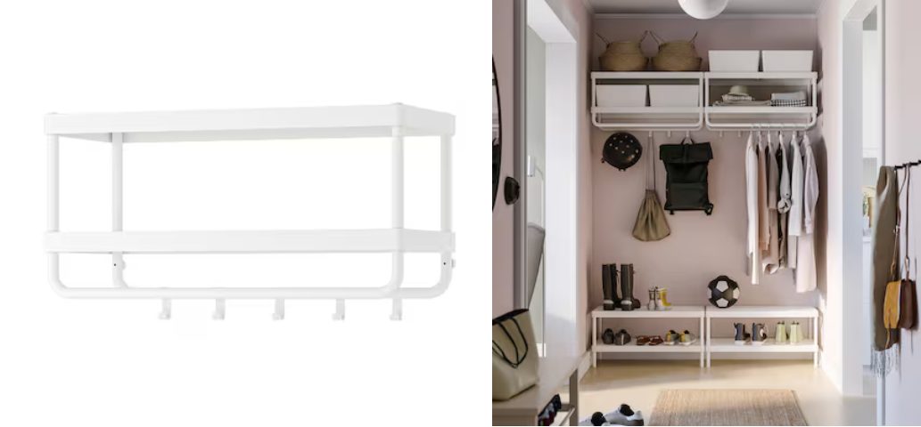 Como la propia marca indica este modelo de estantería zapatero combina a la perfección con otros productos de la gama MACKAPÄR. Es el caso, por ejemplo, de este funcional perchero también disponible en color blanco. Apto para combinar con cualquier decoración, es el accesorio perfecto para colocarlo sobre el estante y proporcionar un extra de almacenamiento donde colgar tu ropa de abrigo o cualquier accesorio, como es el caso de tus bolsos favoritos, esos que siempre quieres tener a mano antes de salir. En cuanto a su precio, lo puedes conseguir ya por tan solo 29,99 euros en Ikea. Otra gran oportunidad.
