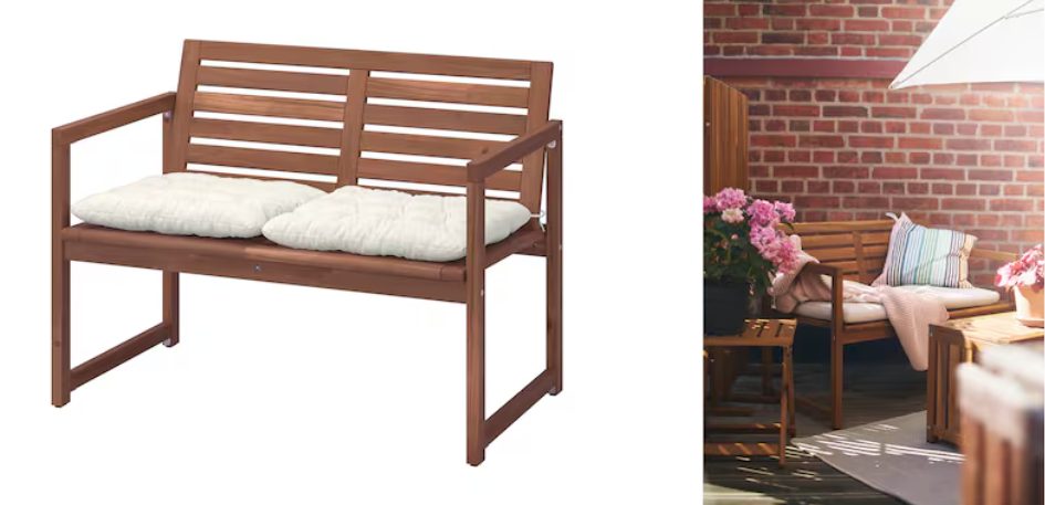 En el caso de que tengas un balcón de mayor tamaño, una terraza amplia o un jardín, uno de los artículos que necesitarás es un sillón cómodo donde disfrutar de un agradable tiempo al aire libre. En este caso, dentro de la sección especial de Ikea, te podrás hacer con esta opción, que destaca gracias al toque cálido que consigue su acabado de madera oscura, ideal para colocarla en cualquier lugar. Se trata de un sofá de exterior que puede albergar hasta a dos personas y que destaca gracias a su diseño limpio, pero acogedor al mismo tiempo. En cuanto a su precio, lo tienes ya disponible por tan solo 113,99 euros en la tienda.