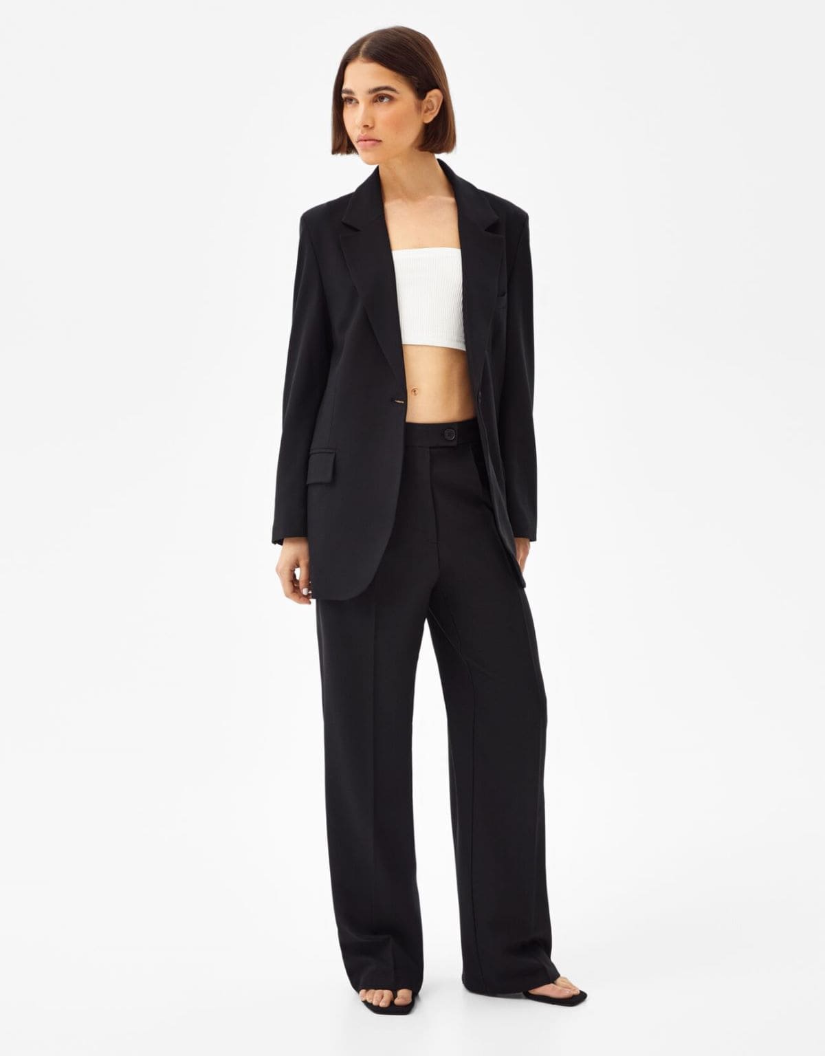 El cuarto blazer mantiene la línea de diseño de su predecesor, pero se distingue por un corte ligeramente más largo y su disponibilidad exclusiva en color negro. Con un precio de 35,99 euros, esta pieza es ideal para quienes prefieren un look más sobrio, pero con un toque de modernidad gracias a su corte holgado y oversize.