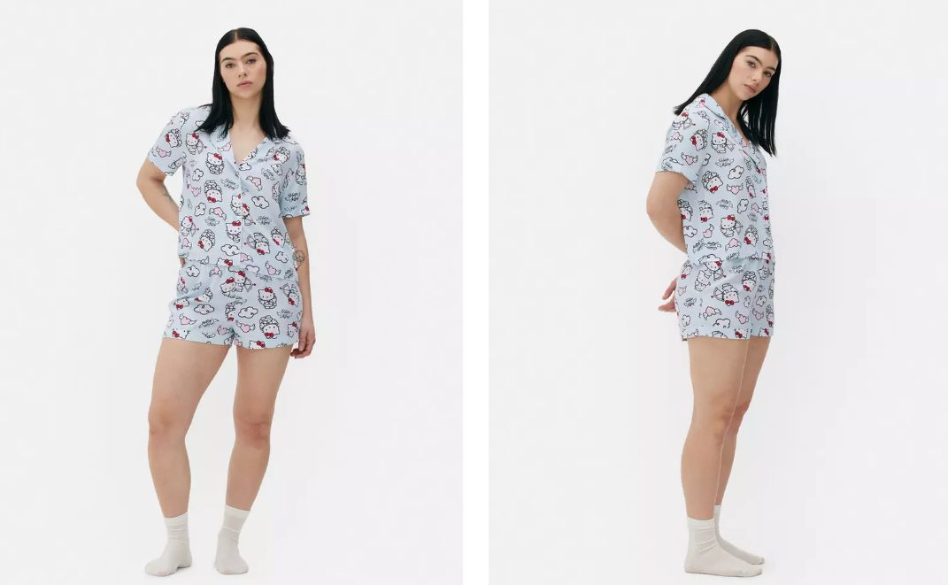Dentro de la sección de pijamas de Primark encontrarás una gran variedad de opciones capaces de captar todas las miradas. Si lo que buscas es darle un toque divertido a tus prendas de hogar, este pijama de Hello Kitty se convertirá en tu gran aliado. De diseño corto, se compone de una parte de arriba en forma de camisa, atemporal y cómoda, y un pantalón corto ideal para los meses de calor. Disponible en tonos como el azul combinado con rosa, además te puedes hacer ya con él por tan solo 17 euros el conjunto. Sin duda, una gran oportunidad para las amantes de la gatita más famosa.