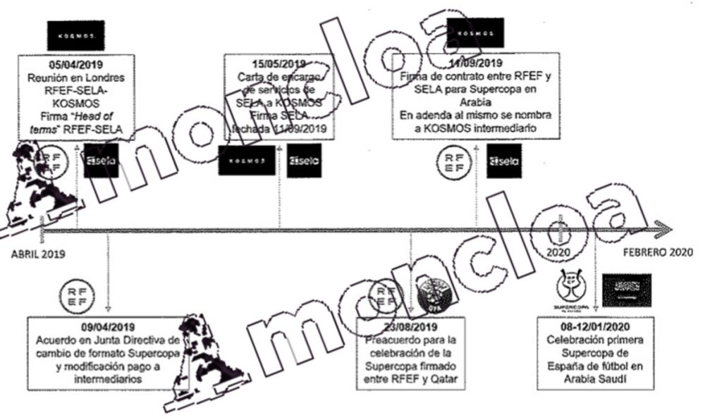 En esa misma fecha se suscribió un preacuerdo (Head of Terms) entre la RFEF y Sela que establecía la celebración de la Supercopa de España en Arabia Saudí durante tres años, prorrogables a otros tres por el que la RFEF cobraría 28,5 millones de euros cada año. Pero el problema es que en dicho preacuerdo no figuraba la participación de ningún agente externo.