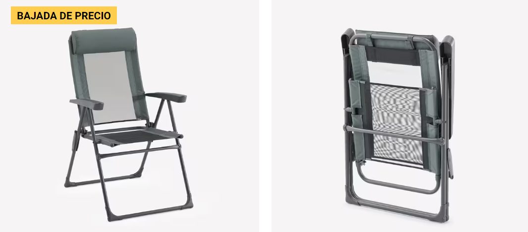 Otro de los accesorios que no querrás dejar pasar si eres amante de las escapadas al aire libre es esta silla plegable. Se puede reclinar y es de lo más cómoda para que puedas descansar siempre que lo necesites. Para ello, cuenta con elementos como el resposacabezas, dos reposabrazos, así como con un ancho respaldo que destaca por estar aireado y por poderse inclinar en distintas posiciones. Soporta una carga máxima de 110 kilos y tiene un peso de 4,85 kg. En cuanto a su precio, te puedes hacer con ella por tan solo 44,99 euros. Una gran inversión.