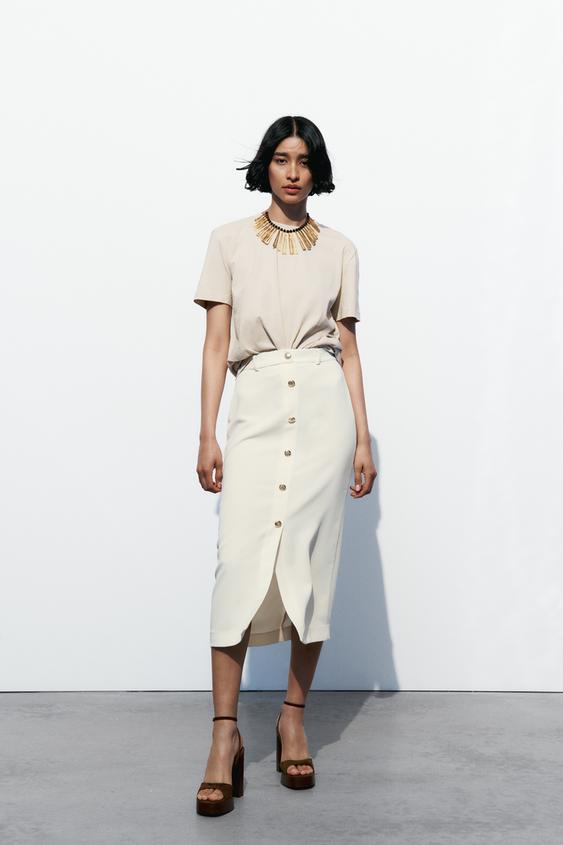 Nos encantan las faldas midi y, por eso, nos hemos pasado por las tiendas físicas y la web de Zara y hemos encontrado una gran variedad de las cuales hemos elegido 5 modelos cómodos, ligeros y perfectos para esta primavera. Todas estas faldas midi son ideales para lucirlas esta temporada por el tejido con el que están confeccionadas, el corte y el color. Nos hemos fijado en faldas en tonos beige o claros, estampadas con flores, con botones dorados o con originales bolsillos. No os las perdáis que se pueden convertir en vuestra prenda favorita para el fondo de armario esta temporada.