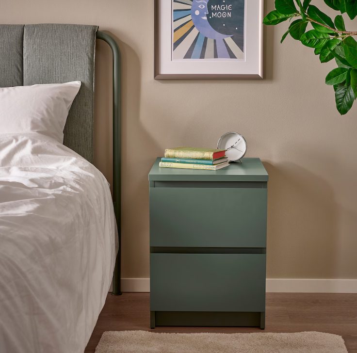 El color verde se ha convertido en un imprescindible para los diseñadores de Ikea y así lo demuestran con todos los objetos novedosos que van incluyendo en sus tiendas. Otro de los elementos que no querrás que falten en tu hogar, sobre todo si necesitas un extra de espacio y quieres renovar el mobiliario, es esta cómoda de dos cajones. Ideal para colocarla como mesilla de noche, destaca gracias a su color verde grisáceo, que le da un aspecto vintage y original. También disponible en tonos como el blanco, el negro o el roble, te puedes hacer ya con ella por tan solo 49,99 euros. Una gran inversión.