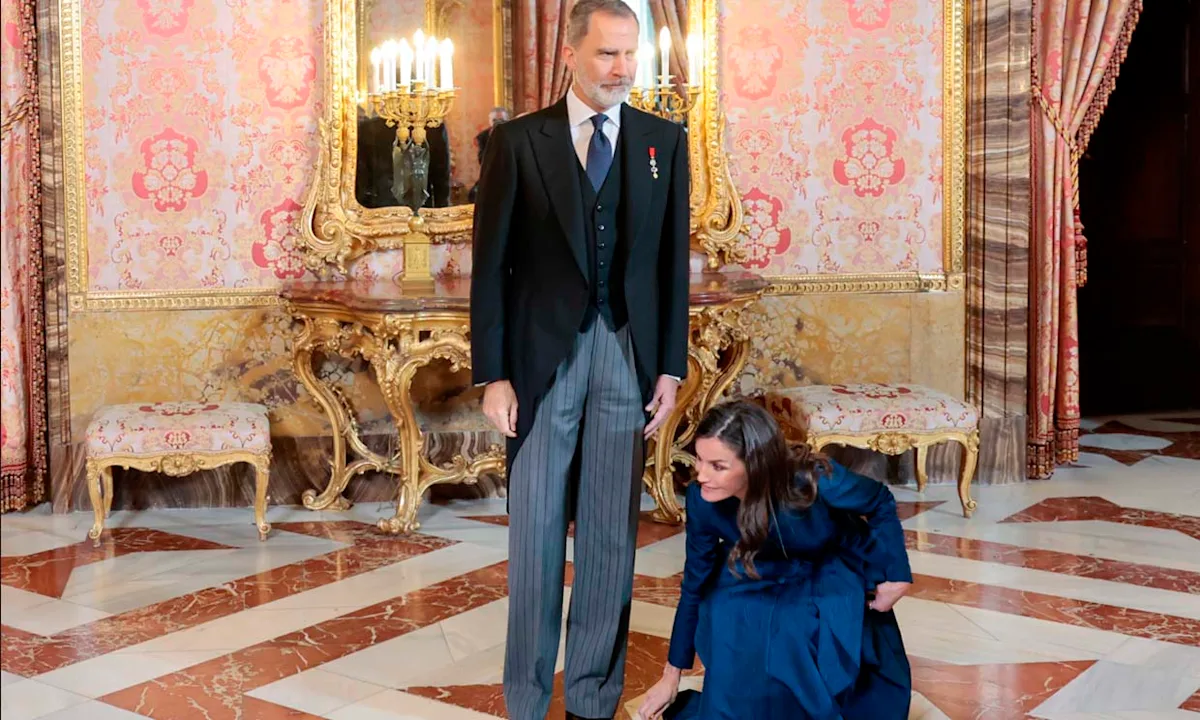 Durante un Besamanos que incluyó la visita de representantes de numerosas embajadas y consulados, la Reina Letizia sufrió un pequeño percance cuando una pulsera se desprendió de su muñeca y cayó al suelo. De manera espontánea y ágil, la reina se agachó rápidamente para recoger la joya sin perder la sonrisa ni interrumpir la ceremonia.