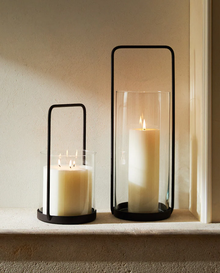 Por último, nos hemos fijado en este farolillo de vidrio y hierro negro con forma cilíndrica y asa superior para su transporte. Un farolillo original que queda perfecto en cualquier terraza o jardín. Se puede encontrar en la web de Zara en los siguientes tamaños 32×18.5×17 cm a un precio de 39,99 euros y 50.5×18.5×17 cm a 49,99 euros.