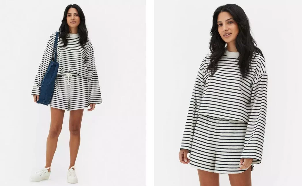 A pesar de que la primavera es la época del calor, siempre es bueno hacerse con una prenda de manga larga. En este caso, en la nueva colección de Primark uno de los imprescindibles es esta sudadera ancha y de rayas horizontales, de estilo marinero, que encajará a la perfección con cualquiera de tus looks. Apta para combinarla con su pantalón a juego, pero también con otras de tus prendas, según el acabado que desees obtener, te puedes hacer ya con ella por tan solo 13 euros en la tienda. Se convertirá en tu mejor inversión de la temporada.