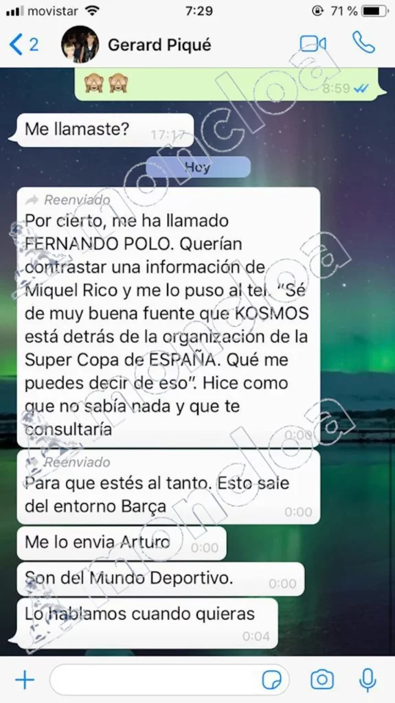 Esta conversación se enmarca dentro de las excelentes relaciones que tenían Rubiales y Piqué, que supuestamente fructificaron en un contrato para organizar la Supercopa de España en Arabia Saudi, donde intermedió la empresa Kosmos de Piqué.