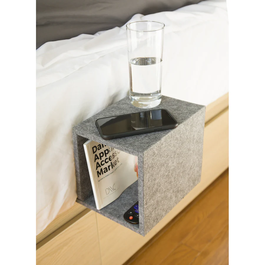 La pequeña mesita plegable de fieltro es un accesorio único que ofrece comodidad y practicidad en el dormitorio. Su diseño inteligente permite que se sujete de manera segura entre el colchón y el somier, proporcionando un espacio conveniente para tus objetos personales como libros, móvil o cargador.