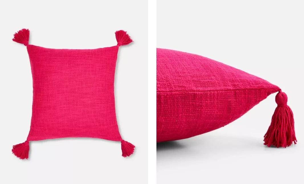 Si crees que ha llegado el momento de renovar tu hogar esta primavera, una de las mejores formas de hacerlo es cambiando detalles como los cojines. Estos te servirán para darle un nuevo toque a estancias como el salón o el dormitorio y no tendrás que hacer una gran inversión para lograrlo. Una de las fundas que más llaman la atención de Primark es esta. Con un tono fucsia de lo más potente, destaca sin duda gracias a las borlas que tiene en cada uno de los picos, dándole un aspecto elegante y divertido al mismo tiempo. En cuanto a su precio, te puedes hacer ya con ella por tan solo 9 euros en la tienda. Querrás llevarte más de una.