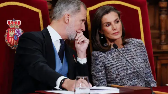 El sábado 4 de mayo el matrimonio va a la Academia militar de Zaragoza, donde Leonor hace su primer curso en el Ejército de Tierra, para el 40.º aniversario de la Jura de Bandera de la promoción de Felipe. Los militares celebran tres aniversarios de la jura, el 25, el 40 y el 50. Felipe juró bandera a final del curso 84-85 y ahora le toca reunirse con sus compañeros de quinta en un ambiente exclusivamente masculino.