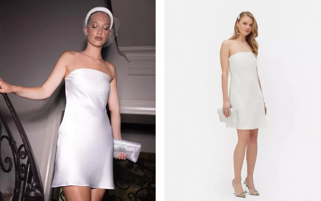 A pesar de que el anterior es uno de los vestidos más llamativos en lo que a la colección nupcial de Primark se refiere, esta otra opción tampoco te dejará indiferente. Si buscas ser una novia disruptiva capaz de atraer todas las miradas, una de las mejores opciones para conseguirlo es con este vestido de corte mini y escote bandeau, muy favorecedor, que destaca por su color blanco impoluto, así como por su sencillez y elegancia. En cuanto a su precio, lo puedes conseguir ya por tan solo 22 euros en la tienda. Una gran oportunidad.