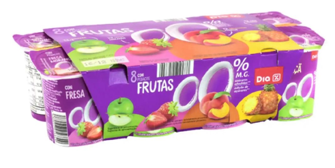 Día también tiene su cuota de protagonismo en lácteos. Este yogur es alto en azúcar y grasa y no tanto en proteínas y calcio, pero su sabor es muy rico y se lleva una buena valoración por parte de los usuarios en cuanto a calidad precio. Brinda variedad de frutas en su pack de 8 envases de 125 g a 1,75 euros el kilo: manzana, melocotón, piña y fresa. En el producto solo hay un 9,8% de fruta real.