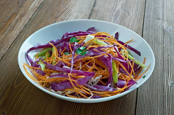 Preparar una versión saludable de la clásica ensalada coleslaw es una manera excelente de disfrutar de este plato con un toque ligero y nutritivo. Comienza cortando finamente repollo colorado y blanco, y luego masajea suavemente con sal para realzar su sabor y textura. Este simple paso intensifica los sabores y hace que la ensalada sea más deliciosa.