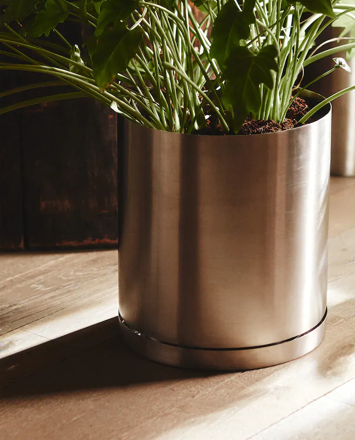 El cuarto que nos ha llamado la atención es este macetero con plato de cerámica con tacto rugoso uniforme. Un original macetero que se puede adquirir en dos tamaños y sigue es este estilo natural que tanto se lleva esta primavera. Un macetero perfecto para espacios exteriores como terrazas o jardines, pero también para interiores como salones o vestíbulos.