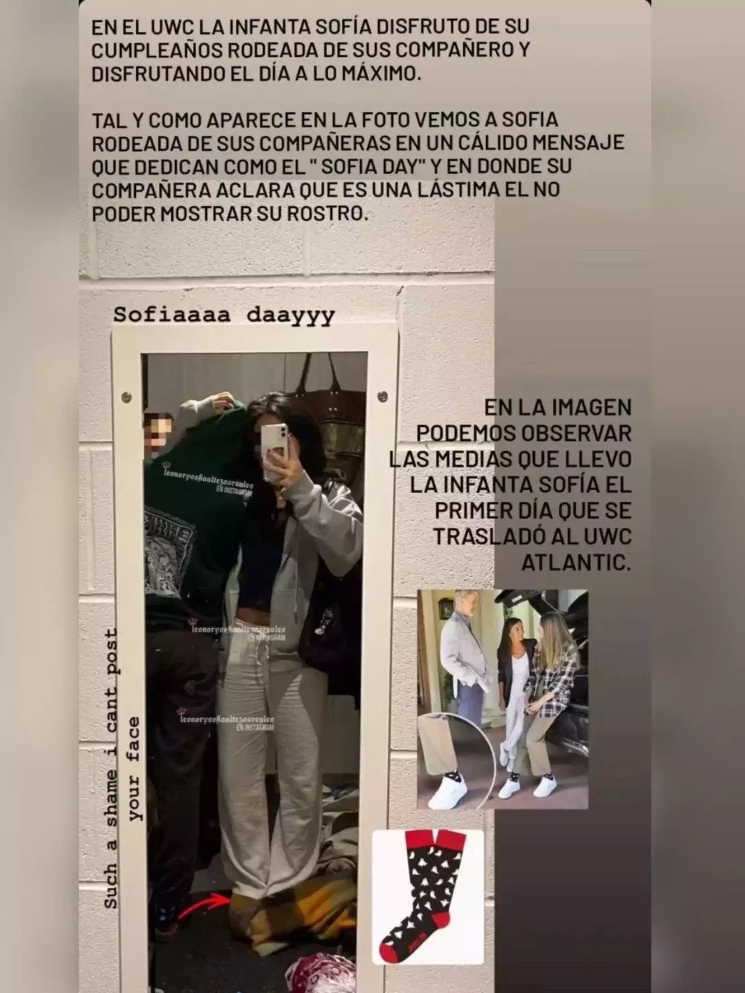 Otro detalle que ha llamado la atención es una frase en inglés que acompaña la supuesta fotografía de la infanta Sofía, que dice: «es una pena no poder publicar tu cara». Esta frase hace referencia al conocimiento de que no se pueden compartir ni publicar imágenes de la hija de los Reyes en las redes sociales, lo que añade un elemento de clandestinidad o prohibición a la situación. La coincidencia de los calcetines ha captado la atención de muchos seguidores de la cuenta de Instagram ‘Leonor y Sofía Altezas reales’, que sigue de cerca los pasos de la princesa Leonor y su hermana. Esta cuenta comparte información e imágenes de las hermanas reales.