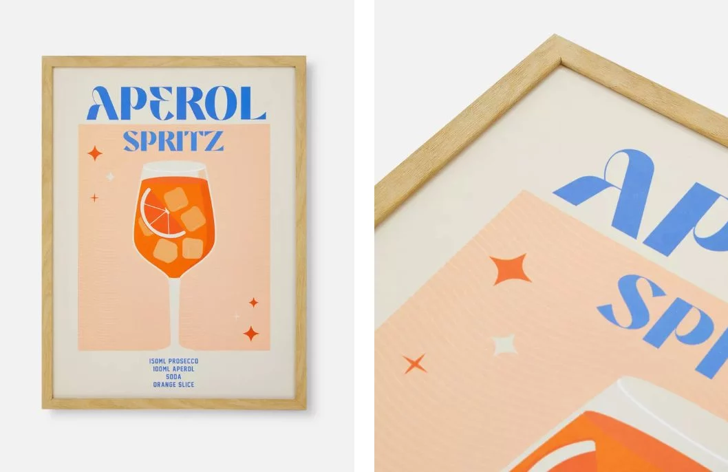 Son muchas las opciones de muebles y decoración con las que te puedes hacer dentro de la sección de novedades de hogar de Primark. Desde la tienda tienen claro que los pequeños detalles son los que marcan la diferencia y así lo demuestran con esta colección de cuadros tan divertidos. En ellos podemos encontrar motivos de distintos cócteles, como son el Aperol Spritz, el Mojito o el Spicy Margarita, para adornar estancias como la cocina, el salón o el comedor. El precio de cada uno también sorprende, pues están disponibles por tan solo 6 euros cada unidad.