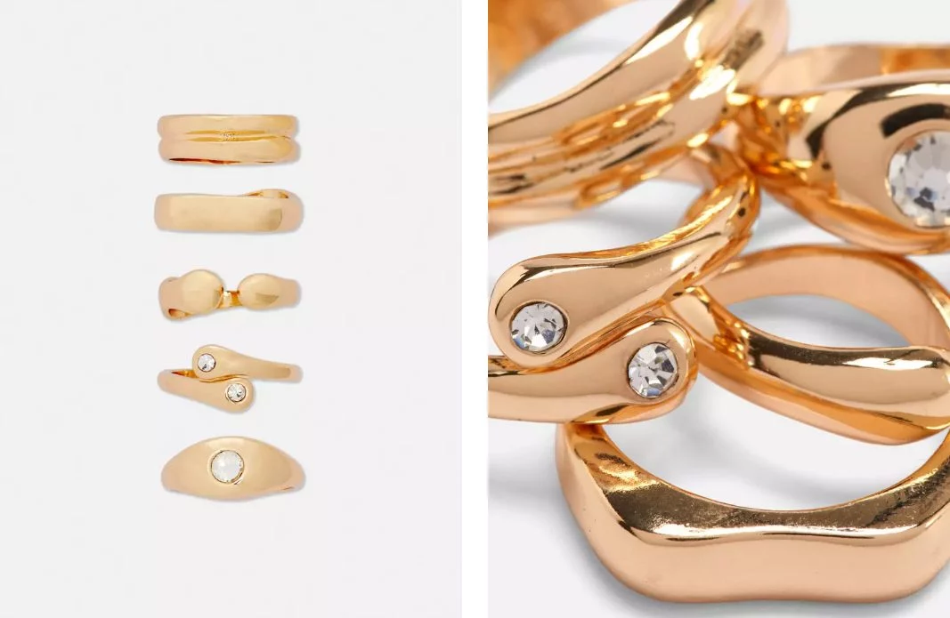 Además de los pendientes, otras joyas que tampoco debes dejar pasar para lucir looks elegantes y personalizados son los anillos. Dentro de las novedades de Primark, son muchas las opciones que tienes disponibles. Sin embargo, si algo llaman la atención son los packs. A través de ellos, podrás lucir distintos anillos o elegir llevar cada uno por separado, dependiendo del acabado que le desees dar al conjunto. En este caso, estos destacan gracias a su diseño grueso, sus múltiples formas y sus detalles de strass, que le dan un aspecto brillante y elegante. Si hablamos de su precio, puedes conseguir el pack de cinco por tan solo 3,50 euros. Los querrás en tu joyero.