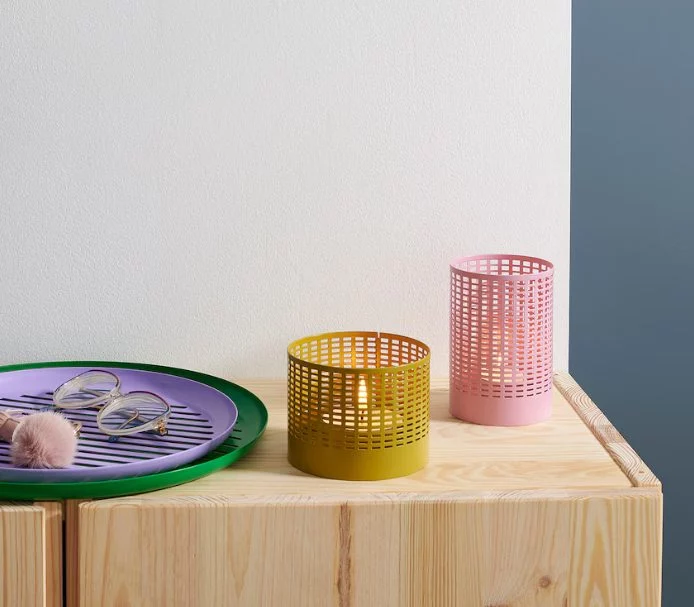 Otros complementos que siempre encajan bien en nuestro hogar, sin importar la época del año en la que nos encontremos, son las velas. En este caso, desde Ikea ofrecen un pack de dos bonitos y llamativos portavelas que también son de edición limitada, por lo que no han tardado en convertirse en unos de los más buscados. Se trata de un conjunto de un portavelas bajo de color amarillo y otro más alto de color rosa claro. De diseño calado, la luz de la vela saldrá por su acabado enrejado para aportar un ambiente único. En cuanto a su precio, te puedes hacer con ambos por solo 6,99 euros. Una gran oportunidad.