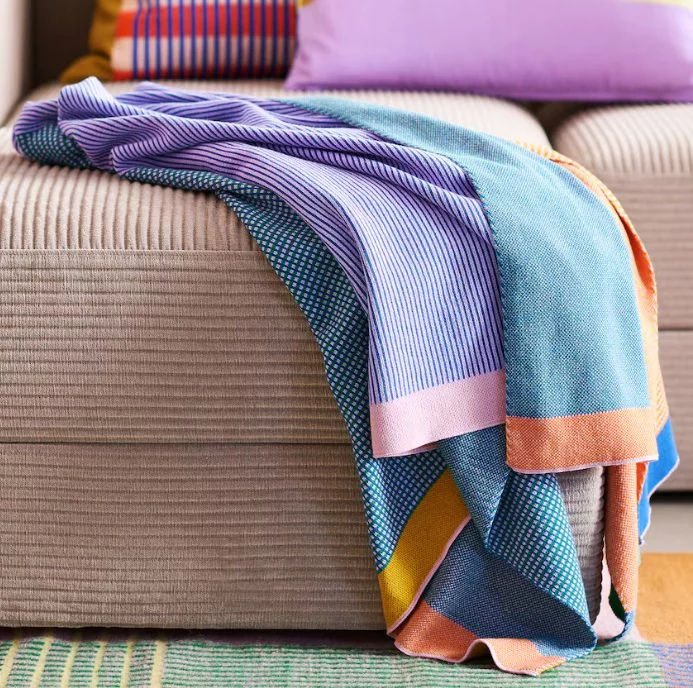 Contar con una manta es siempre una buena idea también durante la primavera, sobre todo, para estar bien cubiertos en esas noches en las que las temperaturas aún continúan bajando. Para hacerlo con el máximo estilo, nada mejor que invertir en esta nueva manta TESAMMANS de Ikea. De nuevo, destaca gracias a su acabado colorido, que mezcla tonos como el azul, el naranja o el amarillo, entre muchos otros, así como por su tejido de 100% algodón. Con un tamaño de 120×180 cm muy interesante, la puedes conseguir ya por tan solo 24,99 euros en la tienda.