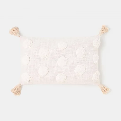 Cambiar el salón puede suponer un gran gasto de dinero. Por este motivo, siempre es bueno saber en qué accesorios puedes invertir para hacerlo de forma sencilla y económica. Uno de los mejores consejos es apostar por renovar los cojines. En este caso, uno de los que más llaman la atención dentro de las ofertas de hogar de Carrefour es este. Se trata de un cojín alargado que destaca gracias a su estampado de lunares, así como por su elegante acabado con borlas de flecos. De tonos claros y neutros, ahora lo puedes conseguir por solo 11,99 euros cuando antes costaba 12,99. Una buena oportunidad.