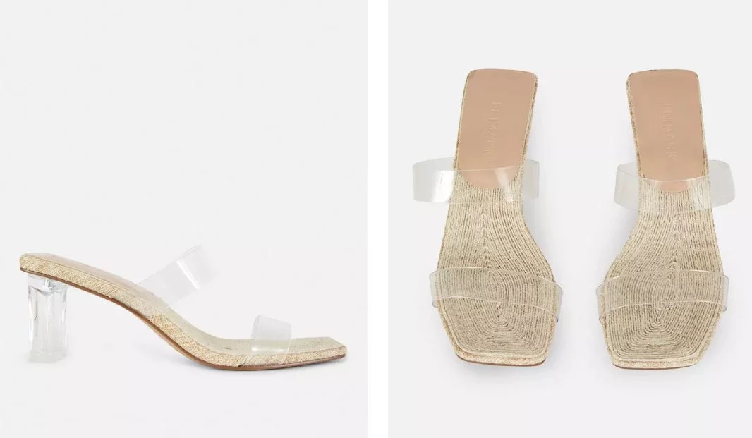 Son varias las opciones que destacan por su originalidad esta temporada. En este caso, dentro de la colección de Paula Echevarría x Primark, no podrás dejar escapar estas atractivas sandalias de base nude que se completan con detalles de vinilo en sus tiras y que cierran un conjunto perfecto con un tacón cuadrado y transparente de lo más llamativo. Aptas para lucirlas en tus eventos más especiales, te puedes hacer ya con ellas por tan solo 20 euros. No tardarán en convertise en tus favoritas.