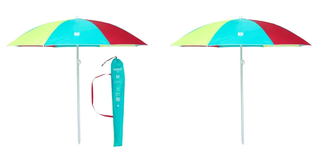 Dentro del catálogo de Decathlon encontrarás una sección especial y muy interesante, que el gigante denomina como tienda de playa, donde podrás hacerte con todos los accesorios que necesites para tus escapadas. En este caso, destaca esta sombrilla, ideal para protegerte del sol, que soporta vientos de hasta 20 km/h y que tiene capacidad para dos adultos. Con 160 cm de diámetro, también se pliega para transportarla de la manera más sencilla y cuenta con un precio de tan solo 24,99 euros. Además, su acabado multicolor hará que siempre sepas dónde está, incluso si te estás bañando en el mar.