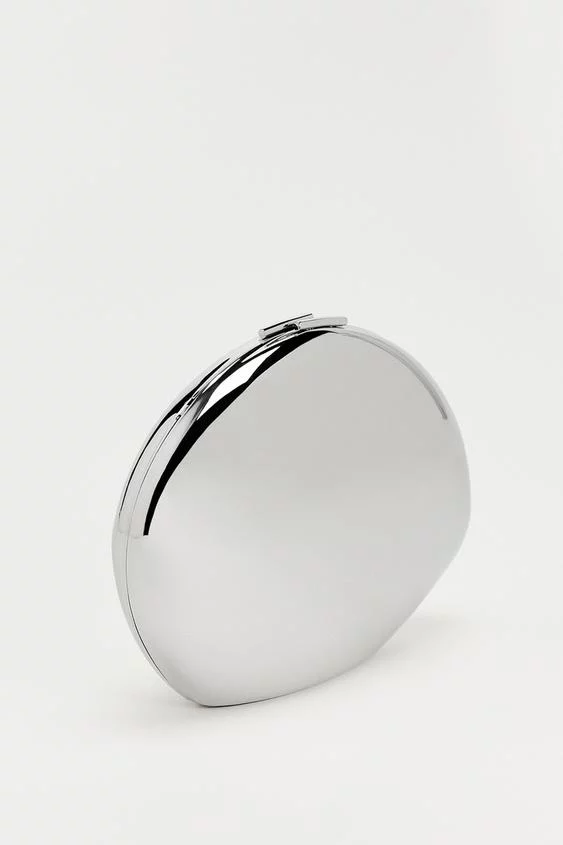 El primero en el que nos hemos fijado es en este original bolso de hombro con forma de concha. Un bolso que sorprende por su cuerpo con abalorios y asa de cadena. Un bolso con unas medidas de 19,4 cm. de alto, 17,3 cm. de alto y 4,7 cm. de fondo. Un bolso 100% poliéster elegante y moderno que se puede encontrar en la web de Zara a un precio de 29,95 euros.