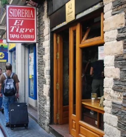 “Hace años, la Sidrería-Bar El Tigre que es el bar de tapas más popular de Madrid. Ahora, son los tres bares de tapas más populares de Madrid. El local primigenio, la barra de la que salieron todas las tapas caseras, se mantiene impasible al cambio constante de Chueca en la Calle Infantas 30”, dice el sitio Web del lugar.