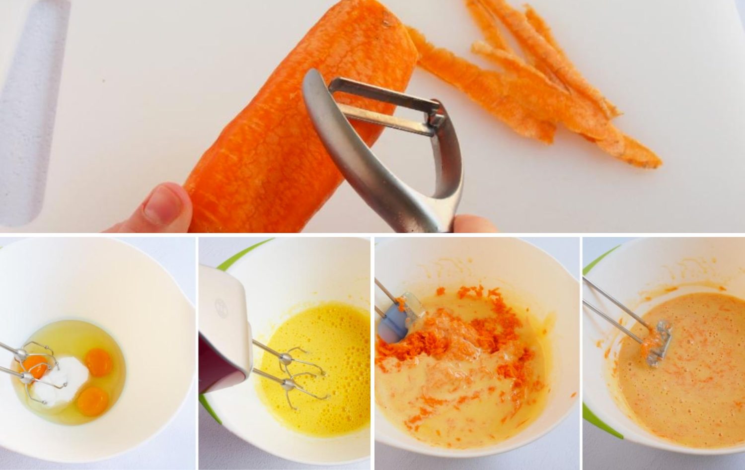 2Preparación del bizcocho de zanahoria esponjoso y fácil de hacer