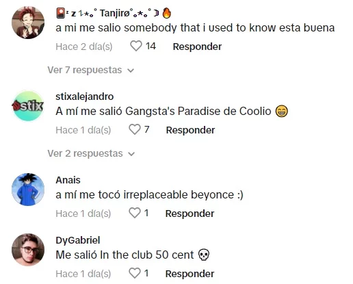 «A mí me salió Bad Day del 2006», sostuvo uno, mientras que otro aseguró con mucha emoción y risa que: «La mía fue Gangsta’s paradise de Coolio.