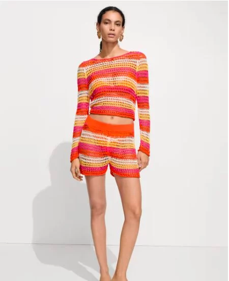 Los Shorts crochet combinado de MANGO son el significado de glamour y confort para el verano, ya que su material es de algodón y tejido crochet. Está compuesto por 59% poliéster, 41% algodón.